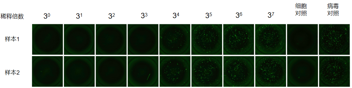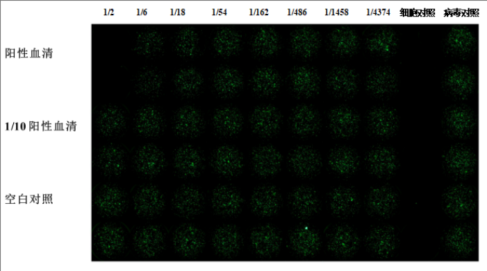 图4.VSV狂犬假病毒荧光斑点观测结果